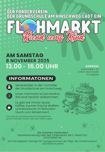 Am Samstag, den 08.11.2025 findet wieder der Flohmarkt „Rund ums Kind“ statt. Der Förderverein lädt dazu herzlich ein: