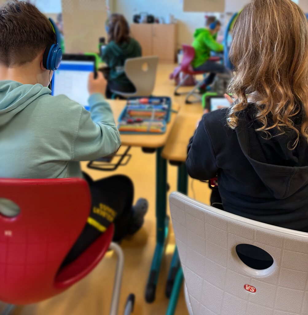 Die Viertklässler durften heute die neuen Kopfhörer an den iPads im Englischunterricht ausprobieren.