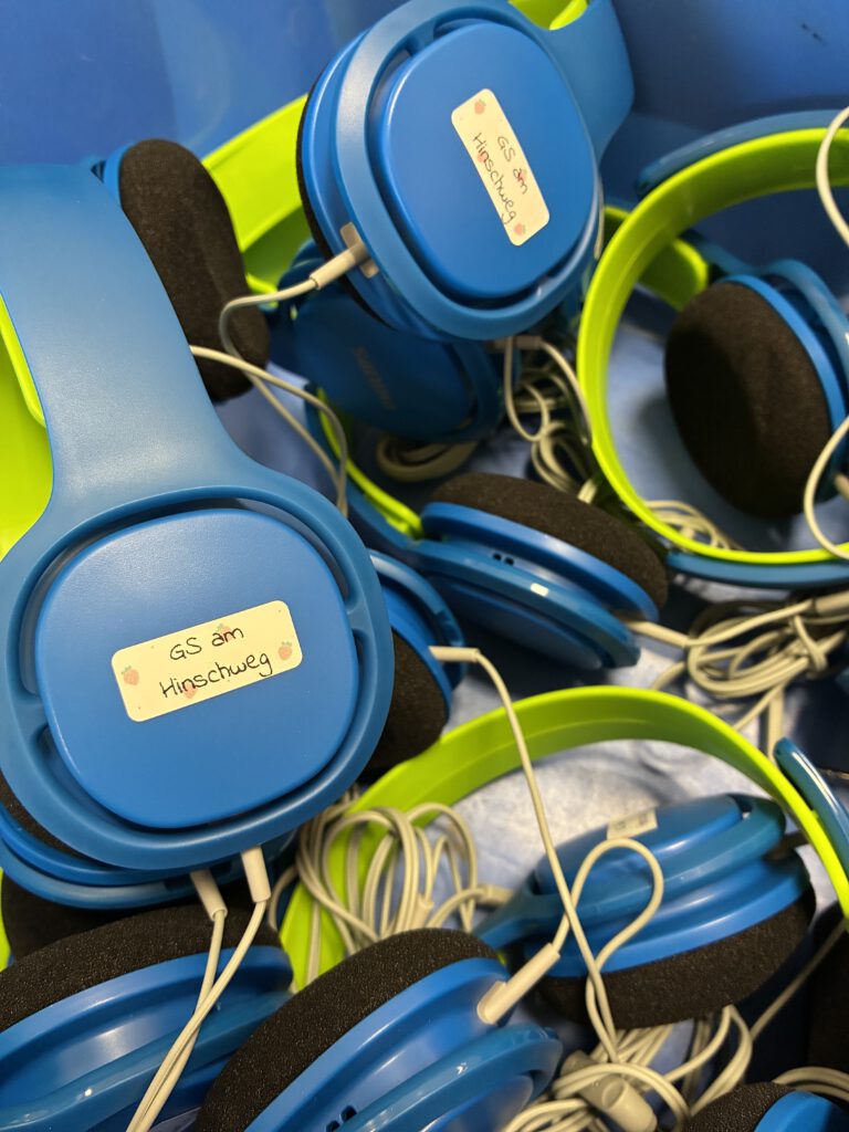 Sie waren ganz begeistert, dass sie ihre Aufgaben nun in Ruhe bearbeiten und auch ihr Hörverstehen trainieren konnten. Die 24 neuen Kopfhörer stehen nun allen Klassen zur Nutzung zur Verfügung, wir wünschen allen viel Spaß damit.